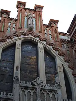 El exterior destaca por la mezcla de estilos: neogótico, neomudéjar e incluso neonazarí. El interior dispone de una sola nave, dividida en dos tramos y cabecera cuadrada cubierta con bóveda nervada octogonal con linterna central. A los pies, por donde se accede, se encuentra un coro alto, tamizado de color por vidrieras de estilo modernista.