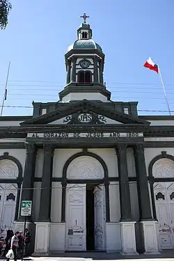 El primer templo que se construyó ahí tenía un frontón triangular y una torre central ochavada en su base, poseía una residencia y una casa de ejercicios. Debió ser demolida en 1899 debido a la gran inundación de ese año.[2] Ese mismo año comenzó la construcción del templo actual, proyectado por el arquitecto Nicanor Marambio y terminado en 1901.[1] Las obras de construcción estuvieron a cargo de Hermógenes Mardones.[cita requerida]