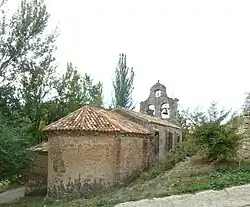![]() Vista del costado sureste de la iglesia parroquial de la Natividad de Pozancos | ||