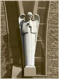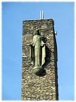 Se aprovechó la piedra de la excavación para el revestimiento de la capilla subterránea, los muros parabólicos laterales y para la esbelta torre de cuarenta y tres metros de altura desde el suelo y otros tres con que remata la cruz. En una pared de lo alto se colocó una imagen de la Purísima en barro cocido, creación de Adolfo Laubner Mayer, con seis metros y medio de altura.