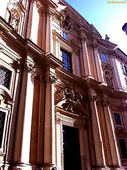 ![]() Fachada de la Iglesia de la Santísima Trinidad de los Españoles en Roma. | ||