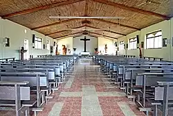 El interior de la iglesia es sencillo. Dentro, cerca de la entrada, hay esculturas que representan al Arcángel Miguel y a San Francisco de Asís.[7]