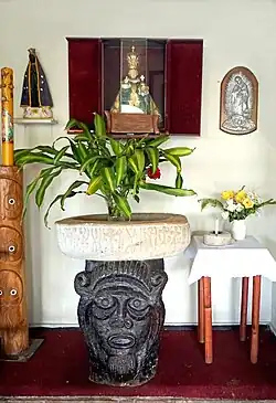 La iglesia también contiene esculturas de Santa Rosa de Lima, la Sagrada Familia y el Espíritu Santo.[7] Las esculturas en el templo están hechas de madera y representan un intento de integrar la tradición local con el cristianismo.[8]