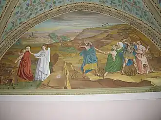 Esta planta superior es de una sola nave y tiene carácter festivo. La planta alta está dedicada a la glorificación de María, madre de Jesús en la historia del cristianismo. En el ábside se representa a la madre de Jesús rodeada de santos en el cielo y de los fieles en la tierra.