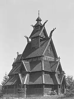 Los cambios significativos que se habían realizado a la iglesia durante el siglo XVII y con el agrandamiento del coro de 1802-1803 hicieron imposible reconstruirla en su forma original. Fue restaurada basándose en parte en especulaciones, reconstruyéndose la nave, el coro y el ábside. Como se argumentaba que la iglesia originalmente había estado rodeada por un corredor y que tenía una torre central, éstos elementos fueron añadidos tomando como modelo a la iglesia de madera de Borgund.
