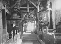 En el siglo XVII la nave de la iglesia, que es una habitación central elevada rodeada por un pasillo, fue extendida hacia el sur. Se añadieron también otros elementos a la iglesia, incluyendo una pila bautismal (1640), un baldaquino de madera sobre el altar (1665) y un púlpito (1693–1695). El retablo, que representa a Jesucristo en la cruz con la Virgen María y San Juan Bautista, data de 1699. Se añadieron ventanas a la iglesia en el siglo XVIII.
