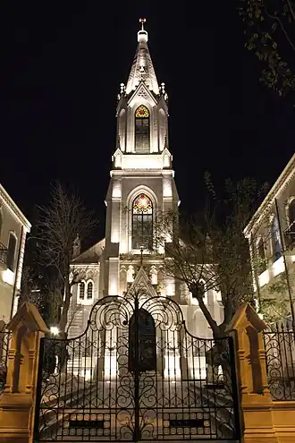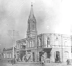 Esta iglesia fue construida con donaciones del feligrés Adolf Eichler y consagrada el 14 de marzo de 1899. Actualmente, también se utilizaba una sala de conciertos del Ministerio de Ministerio de Cultura y Turismo. La iglesia de estilo neogótico presenta un portal coronado con un frontón. Mientras que la comunidad evangélica de Azerbaiyán dejó de existir en 1936, la iglesia sobrevivió al período estalinista debido a las peticiones a José Stalin en las que los peticionarios prometieron, a cambio de salvar a la iglesia, rezar por él hasta la muerte.[1] Sin embargo, el pastor Paul Hamburg y otros siete miembros de la comunidad luterana local fueron ejecutados por un pelotón de fusilamiento el 1 de noviembre de 1937.[1]