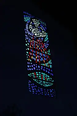 Por último, el conjunto, no se completa sin las ocho vidrieras cuadradas y simétricas que decoran e iluminan la nave de la iglesia. Estas presentan dos motivos que se repiten alternadamente a lo largo de la estancia: un rosetón y una cruz griega.[3]