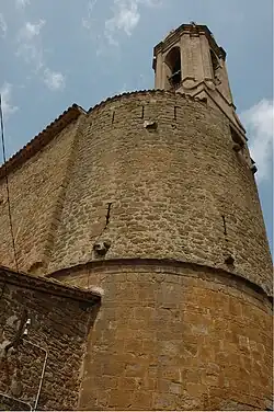 En el siglo XIV se llevaron a cabo unas obras de fortificación que comportaron el despegue de todos los muros del perímetro del templo hasta doblar su altura original. En estos muros hay estacas, unas aspilleras y un matacán. En el ángulo suroeste, por encima de la cornisa, se conserva un sillar con una cruz griega inscrita en un círculo.
