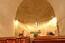 Consta de una sola nave con planta de cruz latina y cubierta con bóveda apuntada. El ábside, que se abre a la nave por un simple pliego, tiene una bóveda almendrada y el centro se abre una ventana de doble derrame con las dos vertientes en gradación.