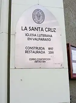 La iglesia luterana de La Santa Cruz en Valparaíso (mayormente conocida simplemente como Iglesia Luterana de Valparaíso) fue construida en 1897 en el cerro Concepción e inaugurada el 1 de enero del año siguiente con el nombre de Evangelische Kirchengemeinde zum Heiligen Kreuz (Comunidad Protestante de La Santa Cruz), convirtiéndose en la primera iglesia protestante en elevar un templo con torre y campanario en Sudamérica.[1] Pertenece a la comunidad de la Iglesia Luterana en Chile (ILCH).