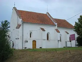 La forma actual de la iglesia se remonta al siglo XIV. Consta de dos partes: la nave y el presbiterio. La nave está rodeada por seis pilares adosados a la muralla por el exterior. Solo las dos puertas, una construida, así como una ventana en la nave, recuerdan la especificidad transilvana de la arquitectura románica. En la parte exterior de la nave, junto al pilar izquierdo de la entrada sur, encontramos un fragmento de un relieve romano. Junto a la entrada occidental, existe otro relieve romano, en realidad una lápida. A través de las figuras que representa, prueba el cultivo de la vid en la zona y en la localidad. En la parte superior del relieve se representa a un legionario romano montado a caballo, y en la parte inferior a un nativo enmarcado por vides, cargado de racimos de uva. El interior del santuario está construido en estilo gótico. Los nervios que parten de las claves de la bóveda del santuario se disponen en dos puntos de apoyo simétricos, en forma de estrella. De las dos ventanas del santuario, una está decorada con figuras geométricas. El arco triunfal entre la nave y el presbiterio es de estilo gótico. Los balcones de la nave y el santuario se construyeron en 1763. La ornamentación pintada de los balcones se basa en motivos populares húngaros estilizados. El púlpito está hecho de piedra y ladrillo. No hay inscripciones en las paredes de la iglesia, ni hay murales. La iglesia no tuvo ni tiene torre, sino que a doscientos metros de la iglesia hay un campanario de madera de 1830.