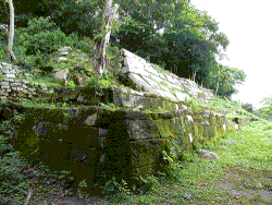 Rampa de las Tres Caras (Grupo C). - En la parte noroeste del C-3 hay dos rampas alternadas muy altas que acceden a un nivel superior, llegando a un patio plano rectangular.