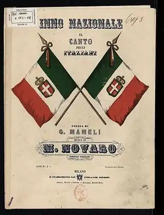 - ↑ «"Il canto degli Italiani" di Goffredo Mameli e Michele Novaro». Archivio Storico (en inglés). Consultado el 13 de octubre de 2020.