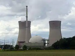 Como con algunas centrales térmicas, las centrales nucleares intercambian entre un 60 a 70% de su energía termal mediante la circulación a través de un cuerpo de agua o por la evaporación de agua a través de una torre de refrigeración. La eficiencia termal de estas centrales es algo más baja que las centrales a carbón,[44][45][46] así que crean más calor de desecho.