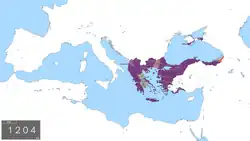 ![]() El Imperio bizantino en vísperas de la Cuarta cruzada,en 1204 | |||||||||||||||||||||||||||||||||||||||||||||||||