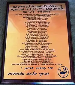 - ↑ «USS Liberty Memorial». Gtr5.com. 8 de junio de 1967. Archivado desde el original el 26 de noviembre de 2011. Consultado el 26 de noviembre de 2011.