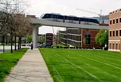 - ↑ «People Mover opening date set». the Clarian. 10 de junio de 2003. Consultado el 14 de octubre de 2008. «Saturday, June 28 The People Mover begins its normal 24/7 schedule, running between Clarian’s downtown campuses.»