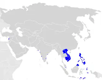 El español en el contiene asiático es hablado por minorías en las Filipinas por unos 3.017.265[1][2] de hablantes, aunque el español en este país ha sido importante en la época colonial perdiendo su hegemonía en el último siglo desde la ocupación estadounidense del país (1898) por la sustitución del inglés. Si bien aún persiste una forma de criollo español llamado chabacano hablado por más de medio millón de filipinos en Zamboanga, Basilán, Cotabato, Dávao y otras zonas del país. Del español también existe de forma subyacente en Filipinas: en nombres y apellidos, topónimos de calles y ciudades, y en incontables palabras en tagalog, ilocano, cebuano y entre otras lenguas nativas. En los últimos años está resurgiendo el interés por promover la lengua española, oficial durante 400 años en Filipinas, como un patrimonio lingüístico más del país. Además Filipinas cuenta con dos instituciones dedicadas a la enseñanza y promoción de la lengua española: el Instituto Cervantes y la Real Academia de la Lengua Filipina (correspondiente de la Real Academia Española) ambas en Manila. Cada 30 de junio se celebra el Día de la Amistad Hispanofilipina, que pretende rescatar los nexos históricos y socioculturales existentes entre España y las Filipinas, entre ellos, el idioma español.