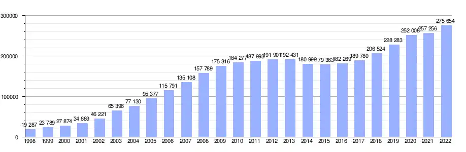 - ↑ «Población extranjera por nacionalidad desde 1998.». INE.