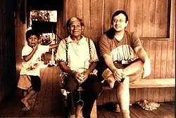 Un chamán y cantante ngäbe, junto a un niño, y un investigador en la reserva Guaymí | ||