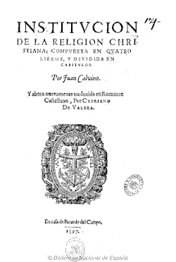 - Institución de la religión cristiana: traducción de Cipriano de Valera, en la Biblioteca Digital Hispánica.