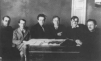 Kandinski dejó la URSS en 1922 para unirse al movimiento Bauhaus en Weimar, luego de desacuerdos sobre el programa del INJUK.[8] En noviembre del mismo año, veinticinco artistas liderados por Ósip Brik se comprometieron públicamente a poner su arte al servicio de la producción, principalmente de dos formas: el diseño gráfico de carteles y montajes fotográficos, y el de objetos de uso cotidiano, como muebles o vestimentas.[9]