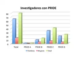 Además del SNI, cada universidad estableció un programa de estímulos al desempeño, con el objeto de reconocer a los miembros de su personal académico que destacan en las actividades sustantivas de su institución. En la UNAM son éstas la docencia, la investigación y la difusión del conocimiento. La prima al desempeño (PRIDE) se otorga en cuatro niveles, PRIDE A, PRIDE B, PRIDE C y PRIDE D. Los primeros los decide una comisión evaluadora especial de cada dependencia, mientras que el nivel D, a propuesta de la mencionada comisión, se turna a una comisión de alto nivel. La siguiente tabla y su gráfica asociada muestra el nivel de PRIDE al que son acreedores los investigadores del instituto.
