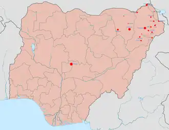 El conflicto islamista en Nigeria comenzó en 2002 con la formación del grupo terrorista fundamentalista islámico Boko Haram.[14] Desde 2009, el conflicto entró en una espiral de violencia, provocando más de 6000 muertos en menos de cinco años.[15][16][17][18] El conflicto se agravó aún más en 2014, con más de 10 000 muertos según las autoridades nigerianas.[19]