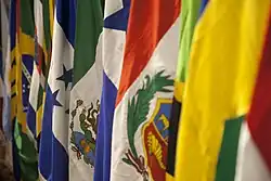 Banderas de diversos países latinoamericanos durante una reunión de la Comunidad de Estados Latinoamericanos y Caribeños (2015).