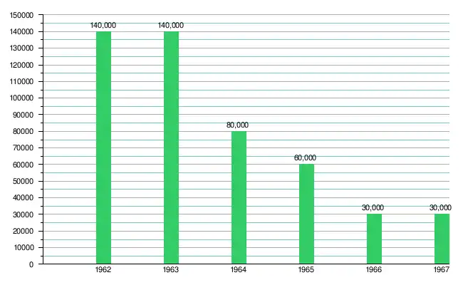 | Cantidad de Gas natural exportado desde Bolivia a Argentina en metros cúbicos por día (1962-1967) |