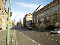 Hacia el este se sigue hacia el Invalidenpark, el Ministerio Nacional de Transporte, Construcción y Desarrollo Urbano de Alemania, el Museo de Historia Natural de Berlín y las facultades de Agricultura y Horticultura de la Universidad Humboldt de Berlín. Al sur de la Invalidenstraße se ubican varios campus de varios institutos e instituciones.