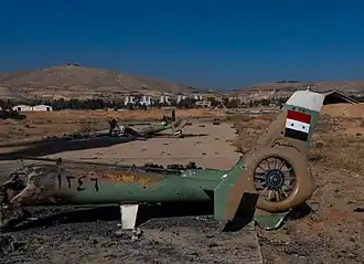 ![]() Arsenal de la Fuerza Aérea Árabe Siria bombardeado por Israel en paralelo a la caída de Damasco. | ||||