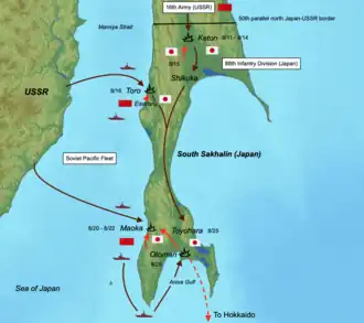 ![]() Mapa de la invasión de Sajalín del Sur | ||||