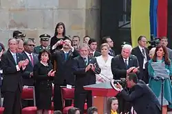 A la ceremonia de transmisión de mando de Juan Manuel Santos como presidente de Colombia asistieron 15 jefes de Estado y de Gobierno y el Príncipe Felipe de Borbón.[16]