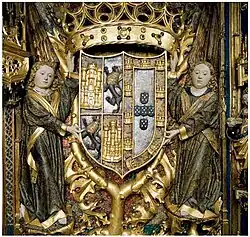 ![]() Efigie orante de Isabel de Portugal en el retablo mayor de la Cartuja de Miraflores (Burgos).[1][2][3] | ||