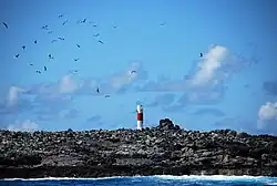 El ave del trópico de cola roja, una de las 6 especies de aves que nidifican en la isla.