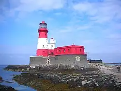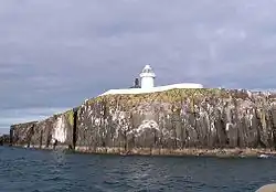 ![]() La isla Inner Farne y su faro. Obsérvense las manchas del carburo de calcio en el acantilado | ||