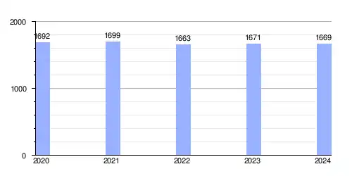 Hasta 2024 la población era de 1669 habitantes,[2] con una densidad de población de 177,36 hab/km².[2]