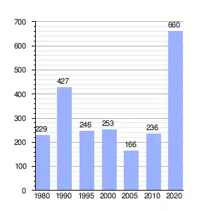 En 2020 registró una población de 660 personas, lo que corresponde al 0.67 % de la población municipal.[1][9] De los cuales 324 son hombres y 336 son mujeres.[1][9]