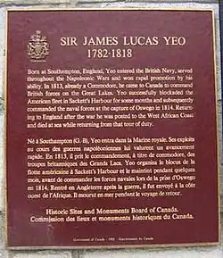 James Lucas Yeo (Southampton, Gran Bretaña; 7 de octubre de 1782 - Portsmouth, Reino Unido; 21 de agosto de 1818) fue un comandante naval británico que sirvió en la Guerra de 1812 . Nacido en Southampton , se unió a la Royal Navy a la edad de 10 años y vio su primera acción en el mar Adriático . Se distinguió en combate varias veces, sobre todo durante la conquista portuguesa de la Guayana Francesa , ganando títulos de caballero en la Orden portuguesa de Aviz y la Orden británica del Baño . Se le dio el mando de lafragata Southampton , en 1812, pero su barco naufragó en las Bahamas aunque fue absuelto de la culpa de su pérdida. Yeo luego recibió el mando del escuadrón en el lago Ontario y lo dirigió durante varios enfrentamientos con los estadounidenses.