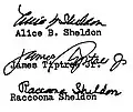 | Seudónimo | James Tiptree Jr. y Raccoona Sheldon | |