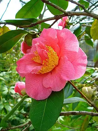 La flor de la Camellia japonica del Jardín Botánico de la Universidad de Karlsruhe. | ||