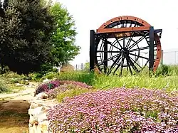 Noria de la recreación de las terrazas de las Lagunas de Ruidera, en el JBCLM, junto a la encina conmemorativa