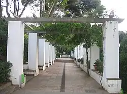 La vegetación es en su mayor parte de tipo mediterráneo, con especies como: pino carrasco (Pinus halepensis), pino piñonero (Pinus pinea), laurel (Laurus nobilis), naranjo amargo (Citrus aurantium), ciprés (Cupressus sempervirens), acacia (Robinia pseudoacacia), aligustre (Ligustrum lucidum), pitosporo (Pittosporum tobira), adelfa (Nerium oleander), evónimo del Japón (Evonymus japonicus), hoja de salón (Aspidistra elatior), geranio (Pelargonium sp.), glicinia (Wisteria sinensis), rosa de Banksia (Rosa banksiae), lavanda (Lavandula angustifolia), romero (Salvia rosmarinus), hiedra (Hedera helix), pino australiano (Casuarina cunninghamiana), eucalipto (Eucalyptus globulus), ciprés de Lambert (Cupressus macrocarpa), cedro del Himalaya (Cedrus deodara), platanero (Platanus X hispanica), etc.[6]