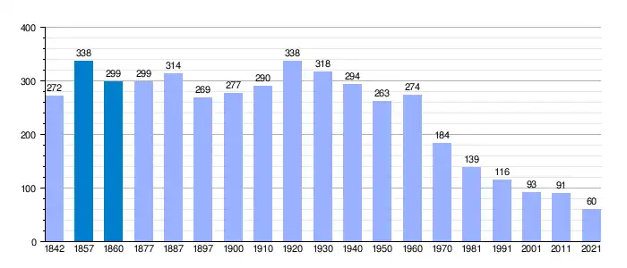 | Gráfica de evolución demográfica de Jarque de la Val[5] entre 1842 y 2021 |