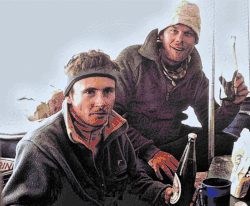 ![]() Jean-Christophe Lafaille (izq.) y David Callaway en el campamento base del Shishapangma | ||