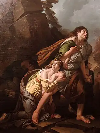 Las versiones posteriores de su Terremoto, donde una familia huye de un templo griego que se derrumba, muestran su desilusión con la Revolución y sus secuelas napoleónicas; en total pintó cinco versiones del tema entre 1782 y 1806.[13]