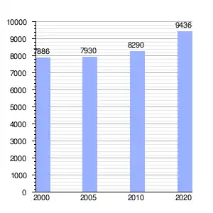 En 2020 el 46.2% de la población (4360 personas) eran hombres y el 53.8% (5076 personas) eran mujeres. El 62.5% de la población, (5894 personas), tenía edades comprendidas entre los 15 y los 64 años.[4]
