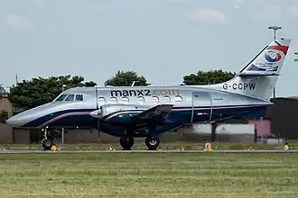 ![]() British Aerospace Jetstream 31 de Jetstream Express arrendado a la aerolínea Manx2 en el Aeropuerto Internacional de Leeds Bradford (2011) | |||||